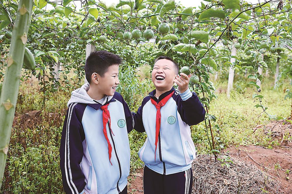 邵武市严羽小学学生在和平古镇体验采收百香果。曾子欣 摄