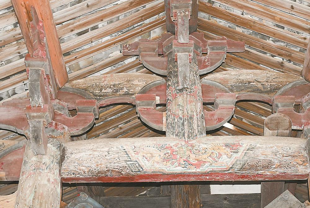 4根梭柱支撑起宝峰岩正殿的核心主架。黄琼芬 摄