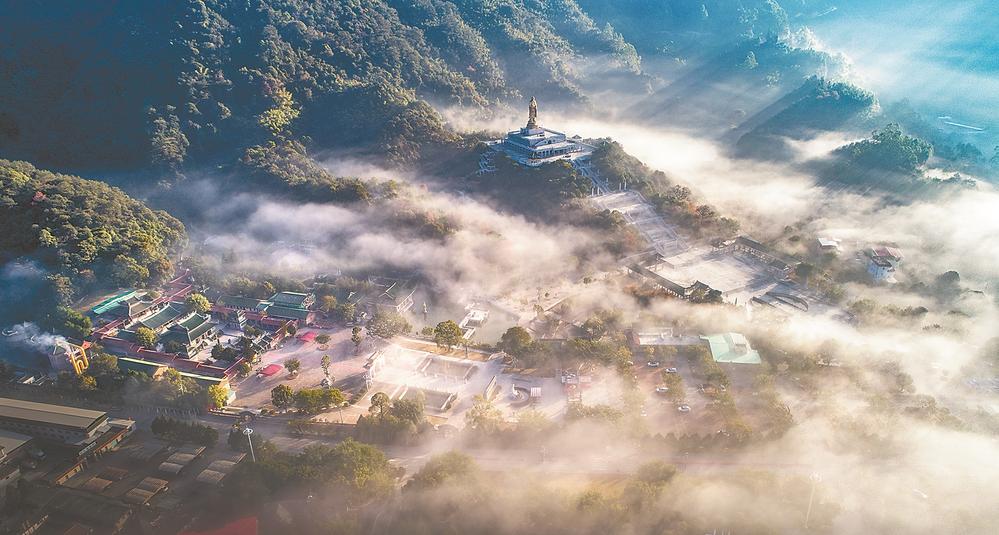 距此50多公里的大溪镇灵通山,享有“闽南第一名山”的美誉,站在山脚仰望,云雾缭绕间,一座寺庙悬空镶嵌在峭壁之上,令人叹为观止。来自厦门的摄影爱好者李国生架起三脚架,等待最佳日照光线:“我每年都要来几次,每次都能拍到不一样的画面。”
