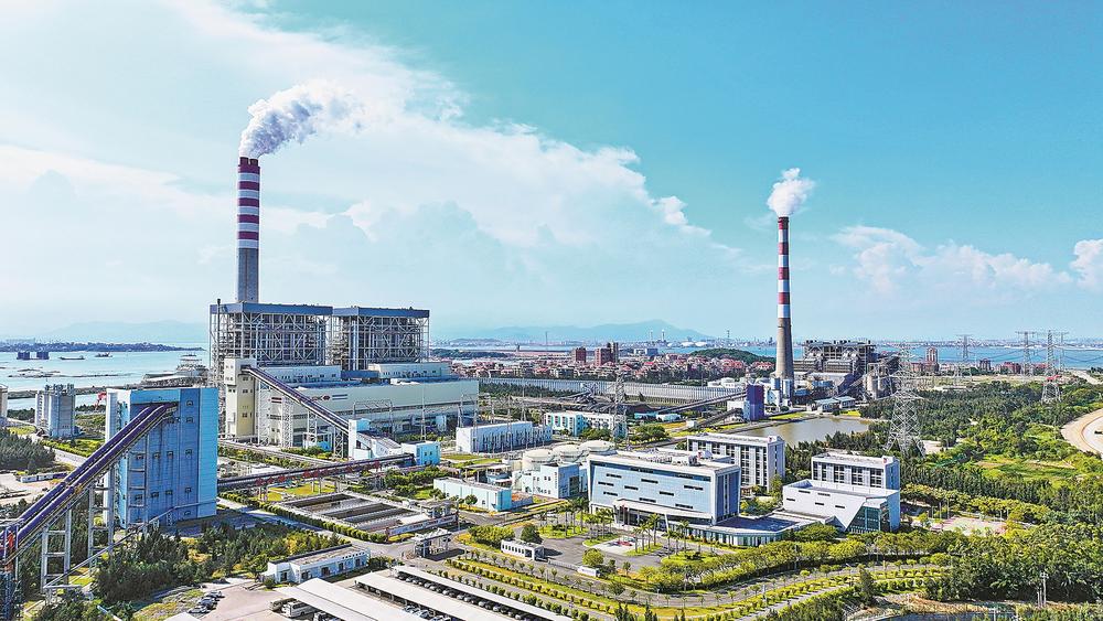 碧海、蓝天、闲云。湄洲湾畔东埔镇塔林村岸线边,两座红白相间的“烟囱”正吐出白色烟羽。这里是国投云顶湄洲湾电力有限公司——福建电网的核心电源支撑点之一,一座绿意盎然的现代化大型火电厂。