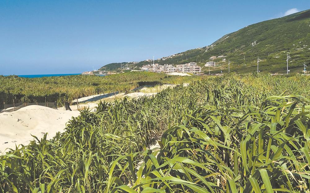 从二○一八年开始,国家菌草工程技术研究中心在平潭用菌草技术开展防风固沙和改良盐碱地试验示范,取得一系列重要研究成果。图为平潭菌草防风固沙研究与示范基地。