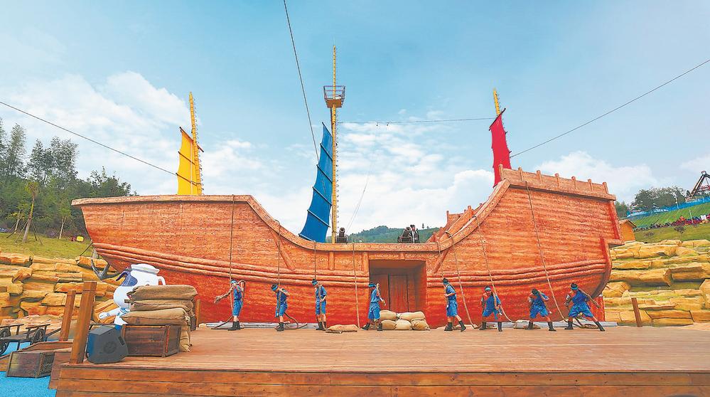 瓷天下海丝谷景区与九野运动小镇隔河相望。该景区占地525亩,共有80多个游玩景点,以陶瓷文化和海丝文化为灵魂,定位为“海丝文化主题景区”。每到周末、假期,亲子研学接连不断。“今年3月以来,平均每天接待的游客都在2000人次以上。未来我们还将在景区发展中融入闽清礼乐文化,兴办礼乐文化研学项目,发展音乐产业等。”该景区相关负责人曾慧萍说。