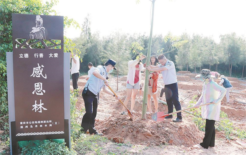 这些年来,湄洲派出所持续参与绿色生态岛屿建设,利用植树节、主题党日、志愿服务日等节点,组织开展义务植树造林活动,累计种下各类苗木4万余株。