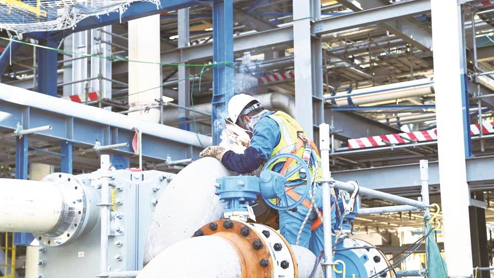 中沙古雷乙烯项目工人正在进行管道焊接。詹照宇 摄