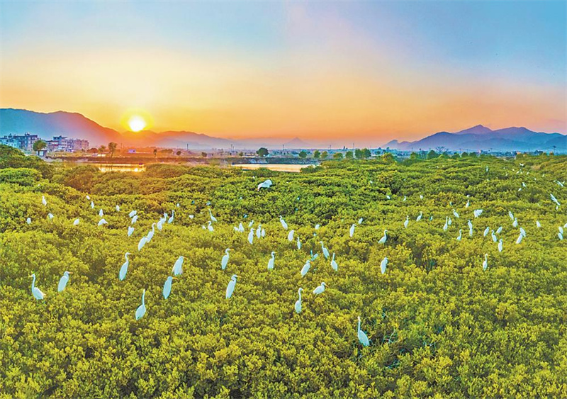 云霄县漳江口红树林国家级自然保护区内,鹭鸟云集在红树林枝头。(资料图片)