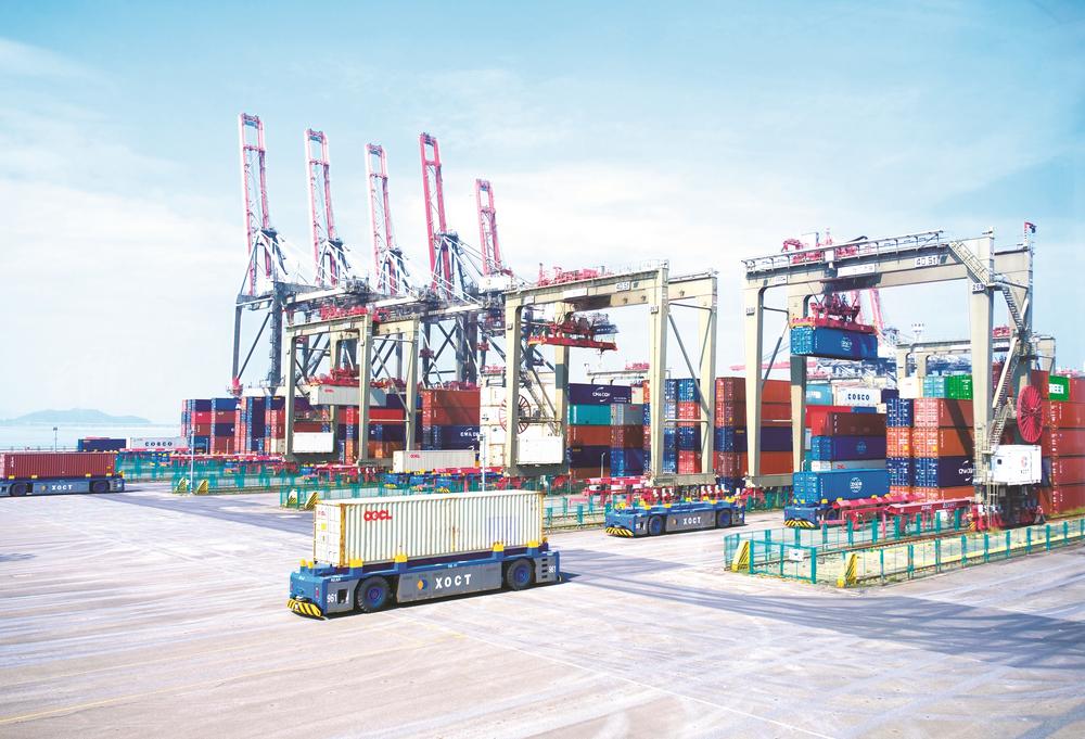 厦门持续推动智慧绿色港口建设。图为远海码头的智能化集装箱运输车。(资料图片)