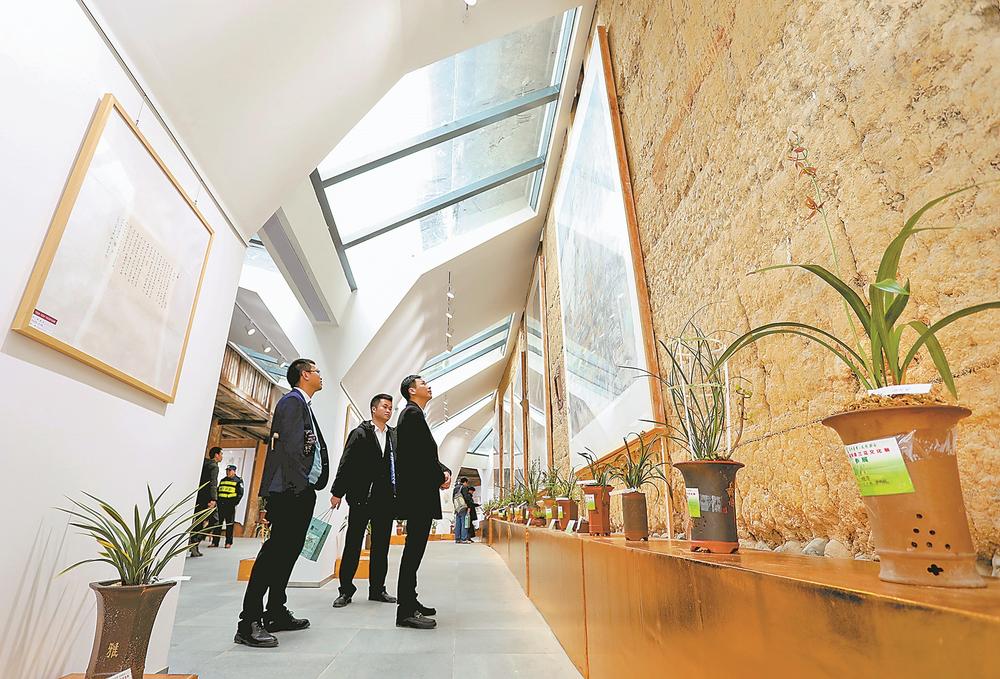 游客在田中赋土楼群景区参观兰花展陈。谢威 摄