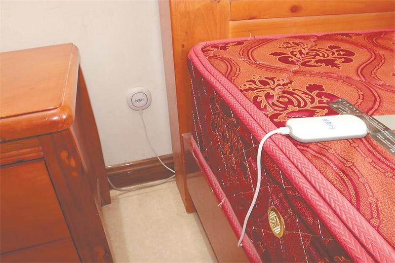独居老人卧房安装的感应床带和一键呼叫按钮。陈小龙 摄