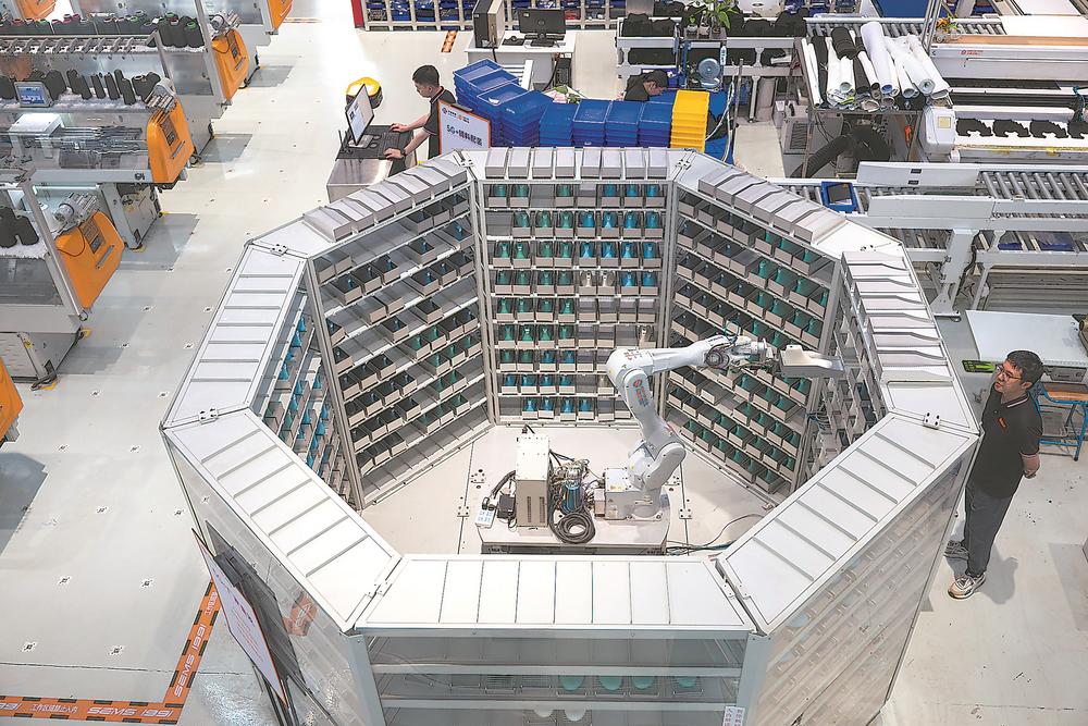 莆田双驰科技定制工厂内,取楦机器人正在工作。这是全国首条全智能化制鞋生产线,日产能力达到2400双。记者 施辰静 摄
