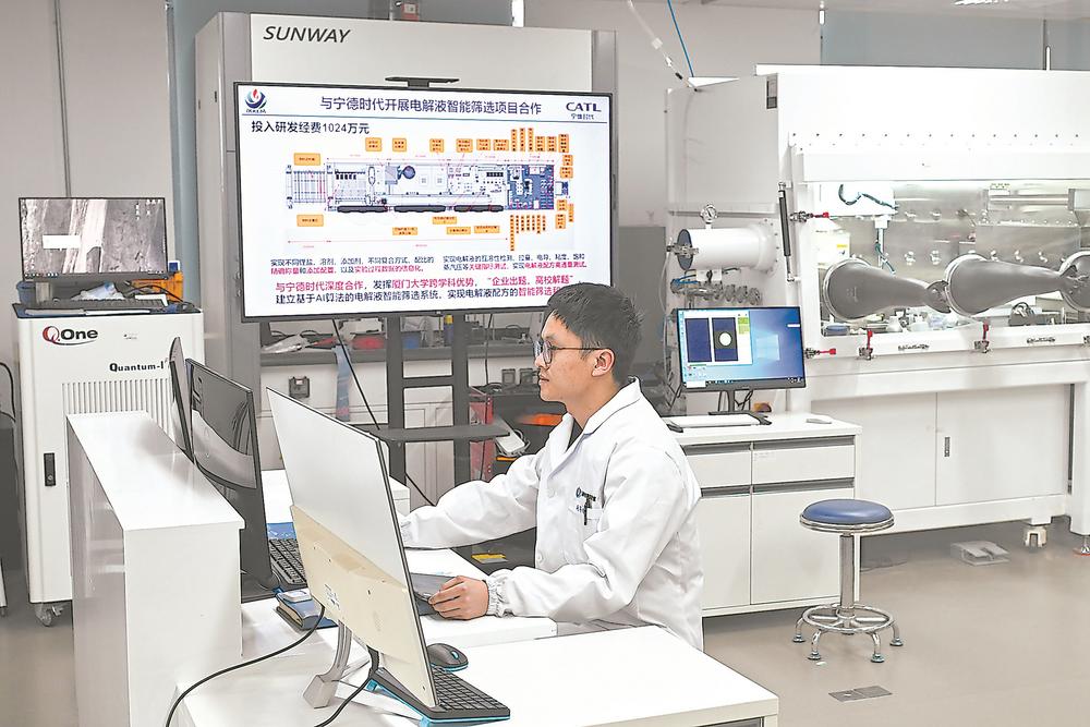 嘉庚创新实验室科研人员在优化电解液智能筛选系统。记者 游庆辉 摄