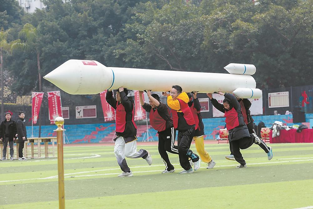 两岸青少年参加趣味运动会。