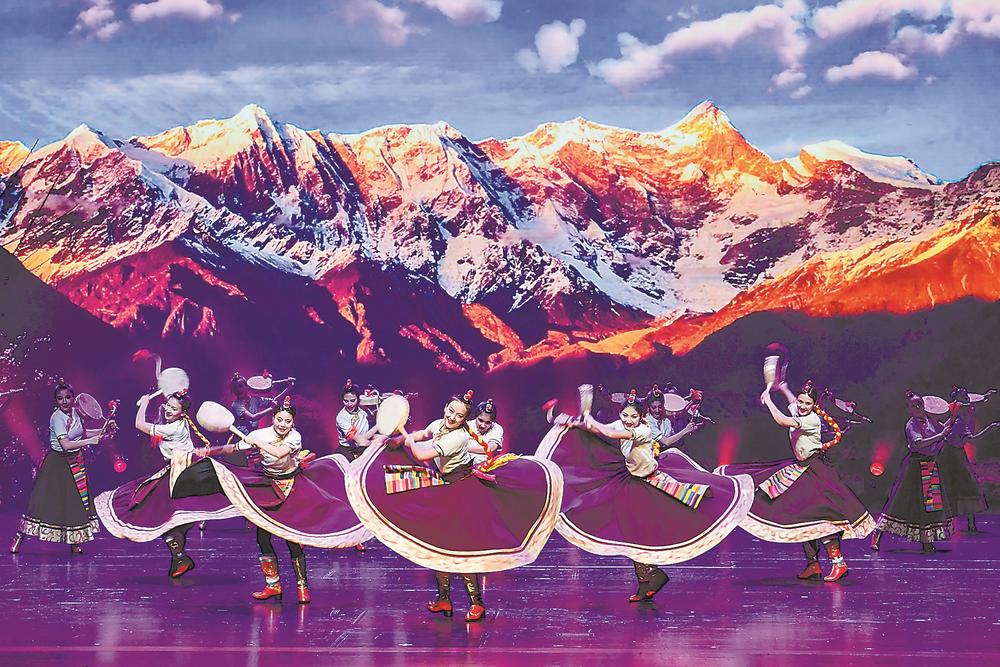 10日晚,昌都市康巴文化艺术团表演男女群舞《欢腾的高原》。记者 吴鹏 摄