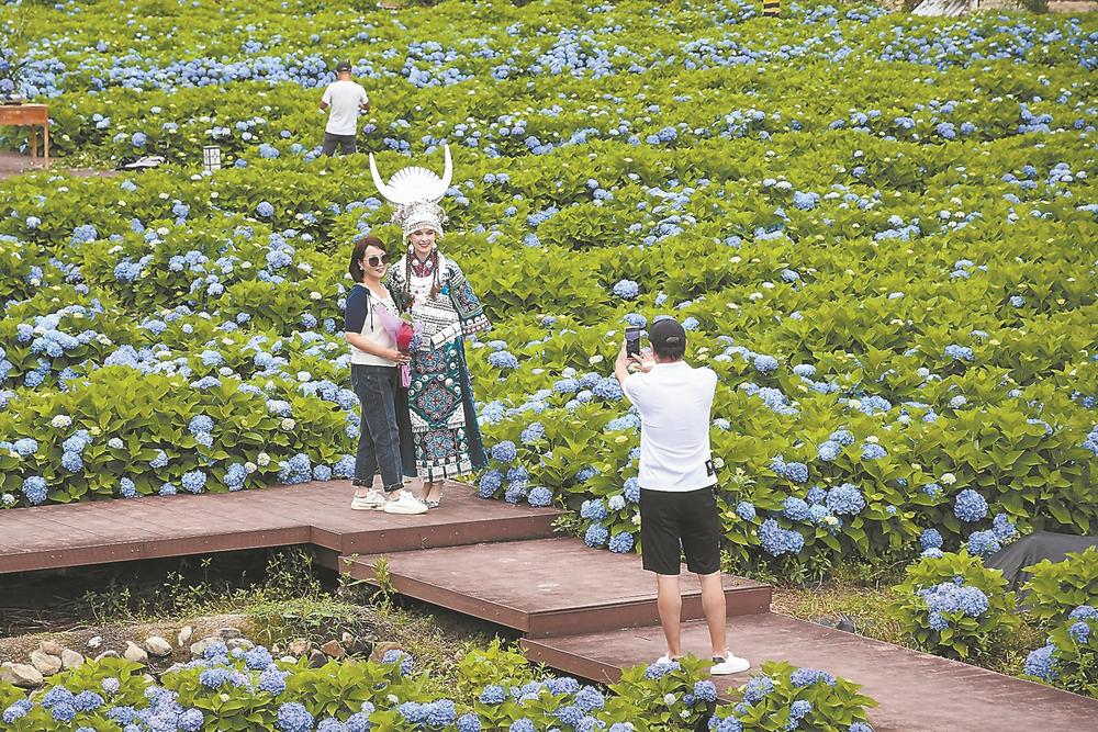 近日,在闽侯县廷坪乡汶合村良地自然村,“相约无尽夏”廷坪首届绣球花海浪漫之旅开启。在绣山花谷,300亩梦幻蓝绣球花海将乡村装点得如诗如画,吸引众多游客“闻香”而来,沉浸花海中打卡拍照,感受绣花团团的魅力。