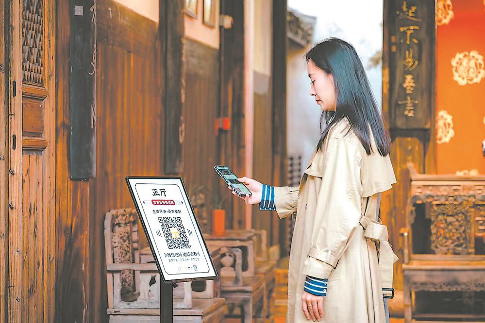 游客在三坊七巷扫码体验“金牌解说”服务。