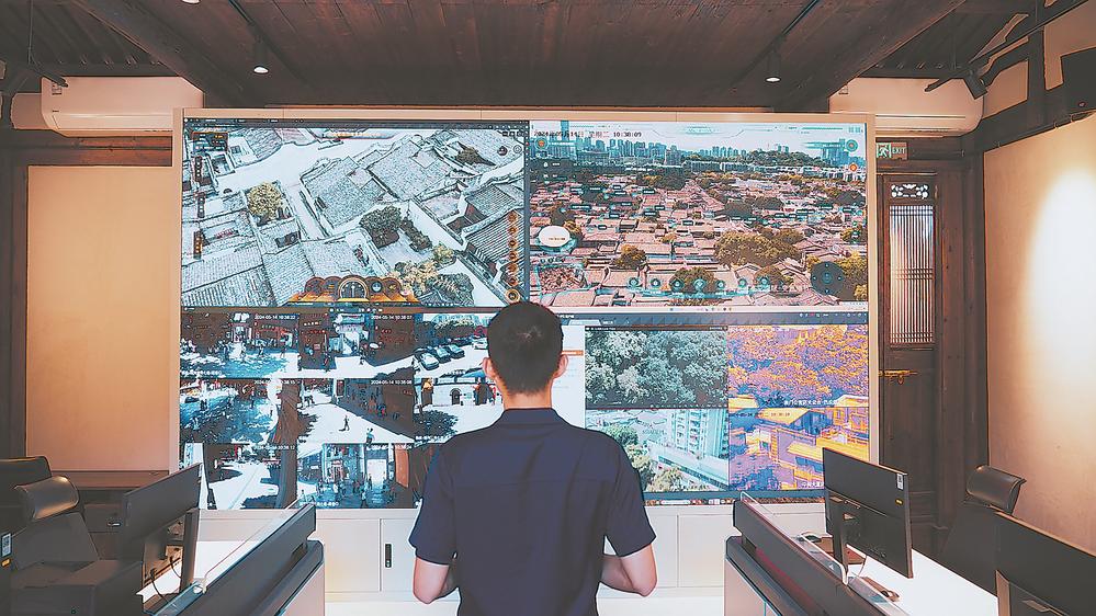智慧消防指挥中心值班人员查看三坊七巷情况。