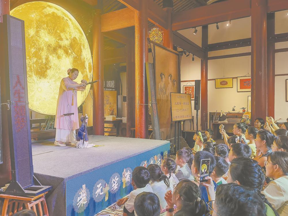 演员在苏廷玉故居为观众展示泉州非遗提线木偶。赵文娟 摄