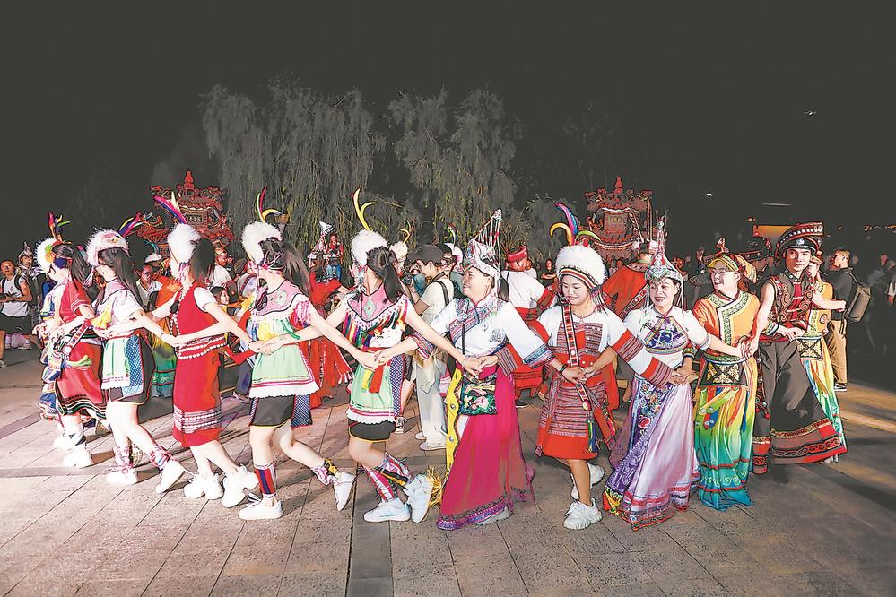 研习营期间,文旅展示、文艺汇演等环节精彩纷呈,让台湾少数民族代表领略了中华传统文化的魅力。其间,两岸少数民族代表还一起参加农民丰收节,加入巡游队伍,手拉手载歌载舞,共赴欢聚的盛会。