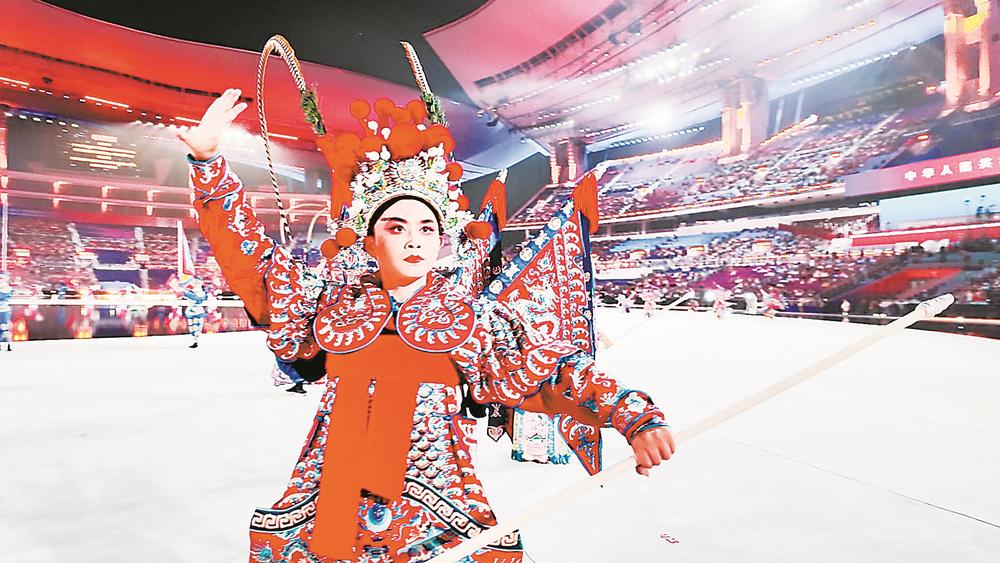 龙岩市汉剧传习中心的演员在全运会开幕式上表演。(受访者供图)