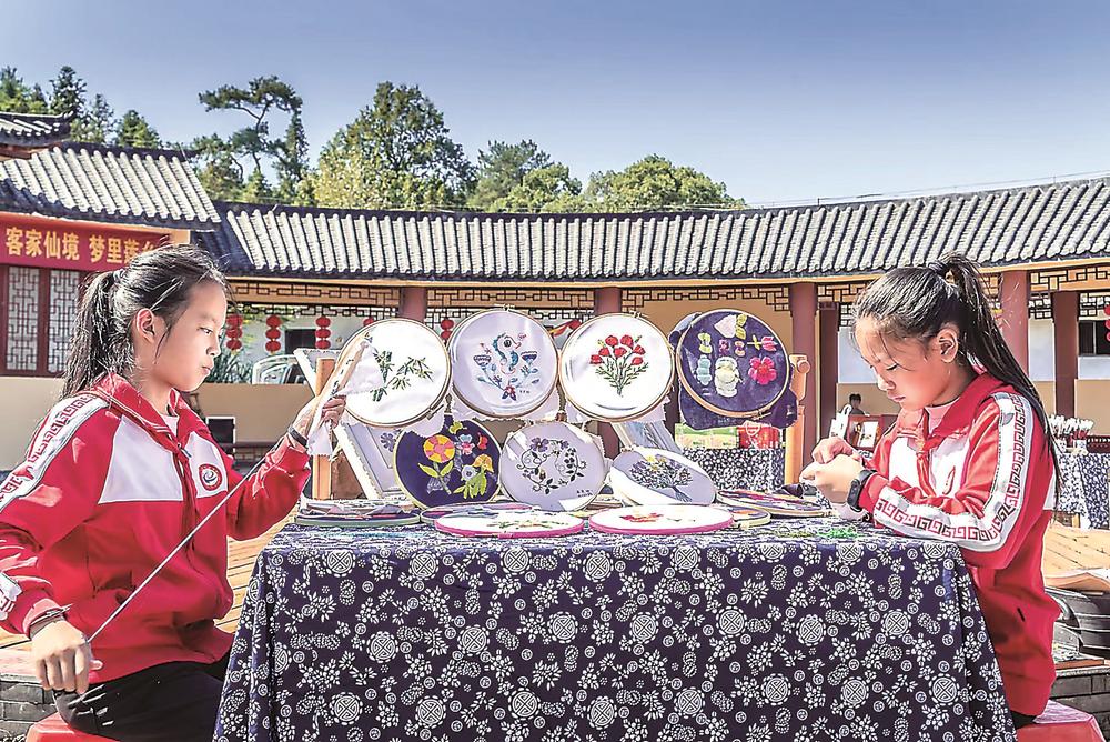 “客家刺绣和普通的十字绣不一样,孩子学习客家刺绣,有利于进一步了解客家文化。”黄珊珊担任刺绣教师后,成了孩子们口中的“刺绣姐姐”。