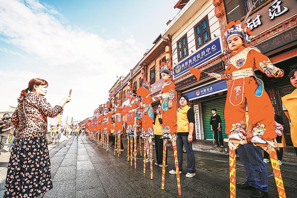 芗城区级非遗石亭高跷走进漳州古城。郑文典 摄