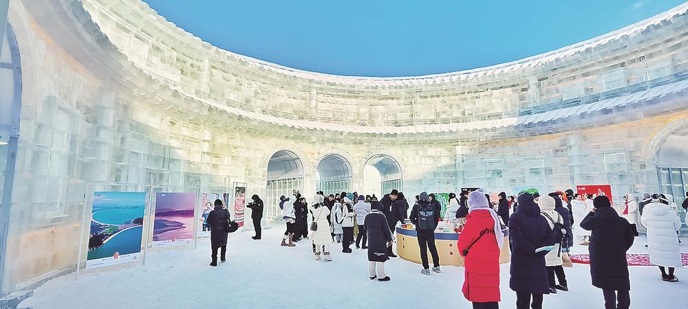 冰雕土楼内游客盈门。