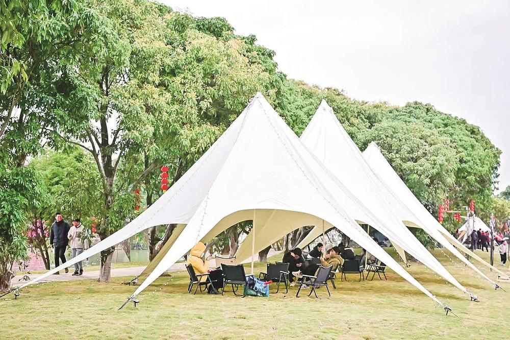 同样拥有丰富水系、繁茂荔枝林的北大村,却玩出不同的“花样”——帐篷营地、非遗手作、休闲饮茶、骑马、真人CS等,给游客提供丰富多元的体验。