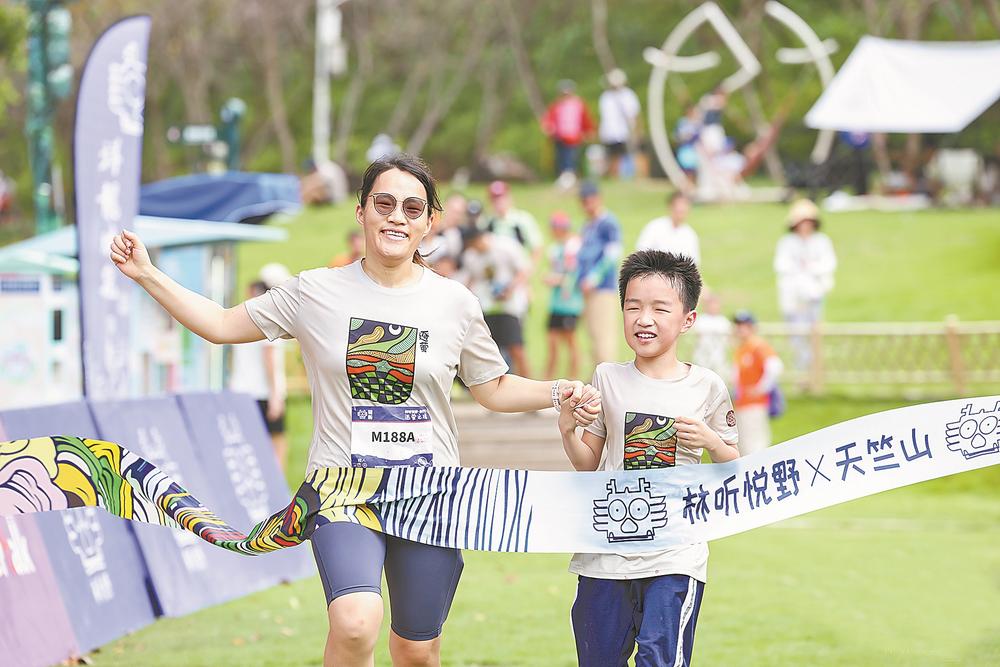 “林听天竺越野赛”活动现场,亲子一起参赛。(林听悦野、厦门天竺山景区供图)