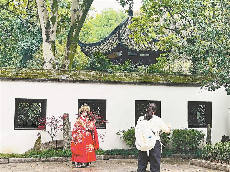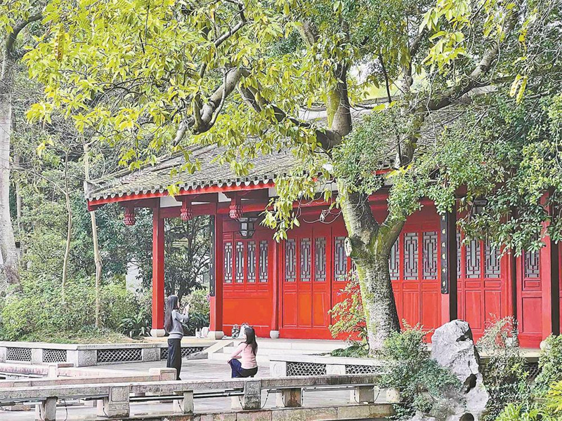 傍晚,夕阳泻下,千年湖水熠熠生辉。孩童结伴从大梦山下穿园而过,在书院、荷亭、步道留下阵阵嬉笑,仿佛古人畅游西湖的心境从未远去。(记者 陈欢欢 文/图)