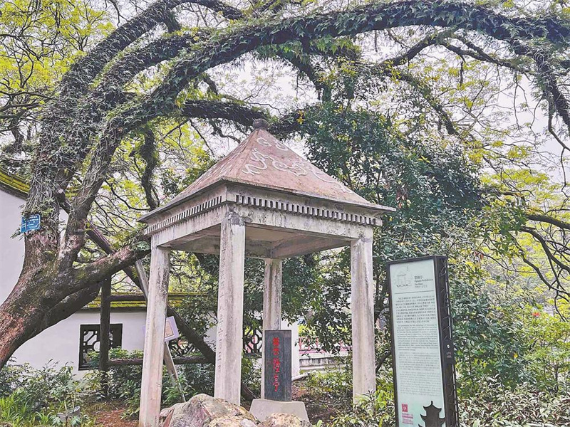 从开化屿出发,穿过飞虹桥、步云桥,福州西湖公园管理处工作人员江峰带着记者一路“寻宝”。开化寺左,有一宛在堂,曾是福州诗坛同人吟诗聚会之地。宛在堂于明正德年间营建,以诗句“孤山宛在水中央”为名,后几经洪水冲毁重建,也曾是林则徐重浚西湖的办公场所。如今,重建后的宛在堂已被开辟为西湖治理数字展示馆。