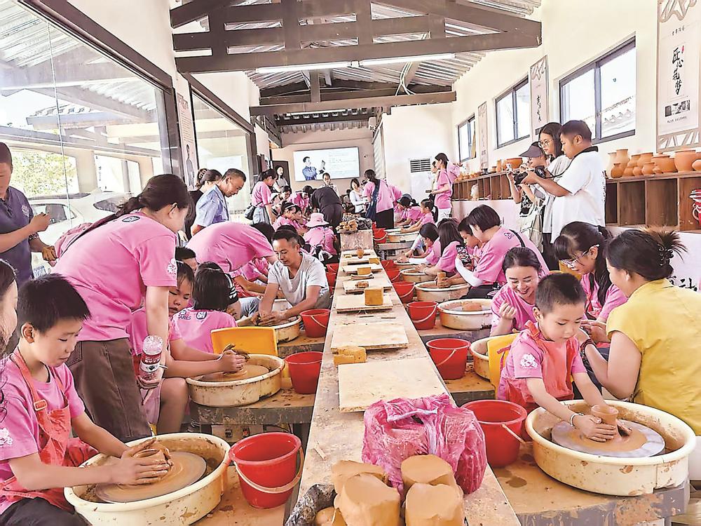 游客在闽越王城博物馆体验制陶。赵文娟 摄