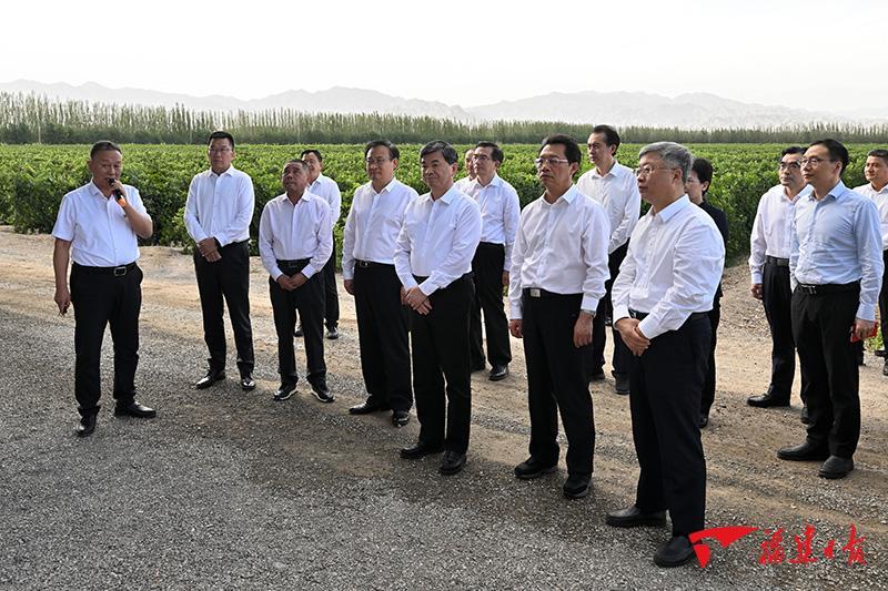 闽宁镇是全国脱贫攻坚楷模,是东西部扶贫协作的成功典范。代表团来到这片昔日的“干沙滩”、如今的“金沙滩”,走进闽宁新貌展示馆了解闽宁镇的巨大变化和规划发展情况,深入闽宁产业园实地考察重点项目及配套设施建设、招商引资等工作进展和闽企在宁投资发展情况,在闽企德龙酒庄了解葡萄种植和葡萄酒酿造、销售等并鼓励企业不断拓展市场、做大品牌,希望当地加快培育一批特色明显、成长性好、带动性强的产业集群,带动闽宁镇高质量发展。在银川经济技术开发区,代表团先后深入宁夏中欣晶圆半导体科技公司、银川威力传动技术公司、沃福百瑞枸杞产业公司,考察企业科技创新、产品研发、人才培养和农产品精深加工、带动农民就业增收等方面情况。