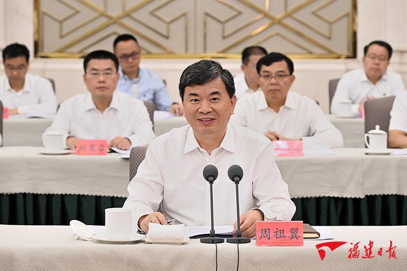 23日,两省区共同召开深化闽宁协作发展交流座谈会。周祖翼在会上对宁夏长期以来给予福建的大力支持表示感谢,对宁夏经济社会发展取得的优异成绩表示钦佩和祝贺。周祖翼说,闽宁协作是习近平总书记亲自开创、亲自指导、亲自部署、亲自推动的伟大事业。27年来,两省区始终坚定不移按照习近平总书记指引的方向开展帮扶工作,坚持联席推动、结对帮扶、产业带动、互学互助、社会参与,探索了宝贵经验,取得了丰硕成果。新征程上,两省区要坚决扛起政治责任,按照习近平总书记当年确定的“优势互补、互惠互利、长期协作、共同发展”指导原则,深化对接、突出实效、完善机制、携手并进,继续共叙山海情,再谱闽宁协作新篇章。要围绕“巩固”,严格落实“四个不摘”要求,持续落实民生保障普惠性政策,改善脱贫地区基础设施条件,做大特色农业产业,帮助销售宁夏农特产品,共同推进乡村振兴;围绕“互补”,深化产业链供应链上下游协同,优化配置资源,加大招商引资,深化科技合作,进一步完善提升闽宁产业园,促进协作项目落实落地,共同提升产业现代化水平;围绕“合作”,发挥资源优势,拓展合作模式,推进两地产业项目常态化对接,加强两省区旅游精品线路研发推广,共同推动文旅融合发展。