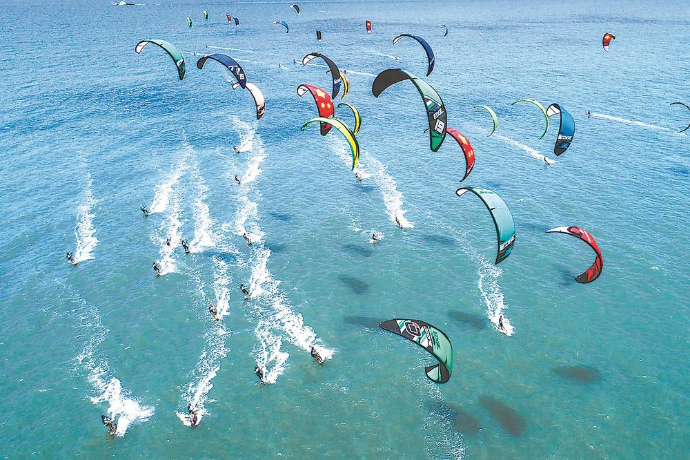 风筝冲浪是平潭四大核心赛事矩阵之一。图为在平潭举行的国际风筝冲浪空中花式邀请赛。(受访者供图)