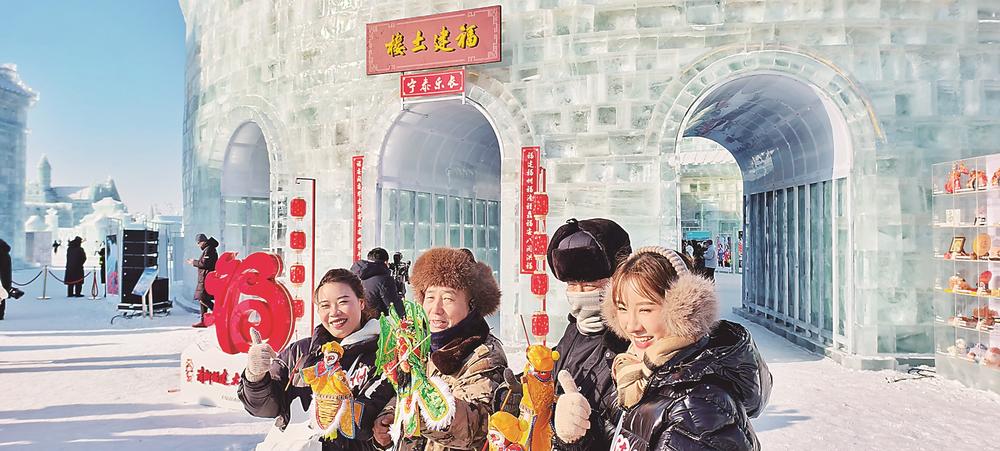 冰雕土楼内游客盈门。
