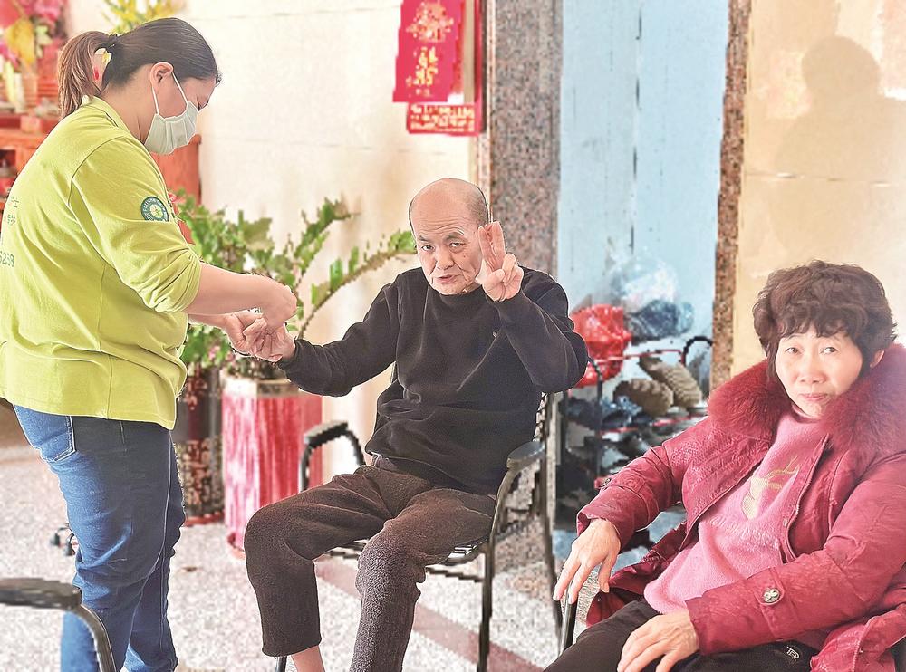 前不久,记者来到晋江市内坑镇黎山村前山五区78号时,扑鼻而来的是洗发水的香味。刚沐浴完的张基作,做完关节护理后,被护理员搀扶着慢慢走动。老伴张阿婆坐在一旁看着,脸上满是笑容。