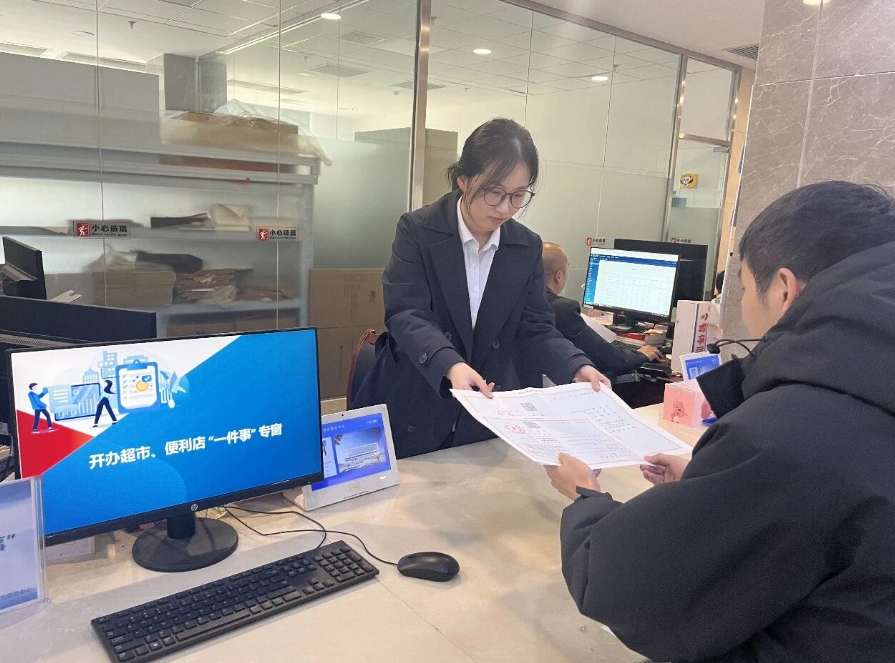 改革前,开办超市需分别对接市场监管、城管、消防等多个部门,多头奔走,全流程耗时10个工作日。改革后,申请人仅需在“一件事”专窗提交一次材料,后台系统便会自动将信息同步推送至各相关部门,实现并联办理、一窗限时办结。目前,申报材料已精简至43份,压减近25%,办理时间压缩至6个工作日内,提速超40%,并全程实现办事“零跑动”,审批效能显著提升。