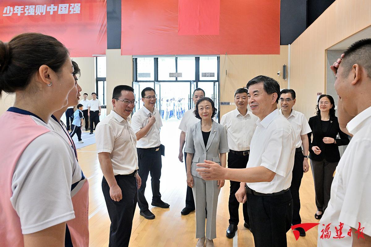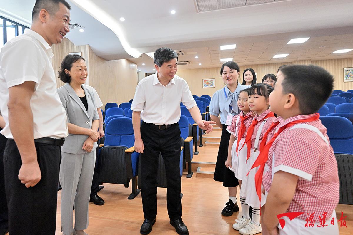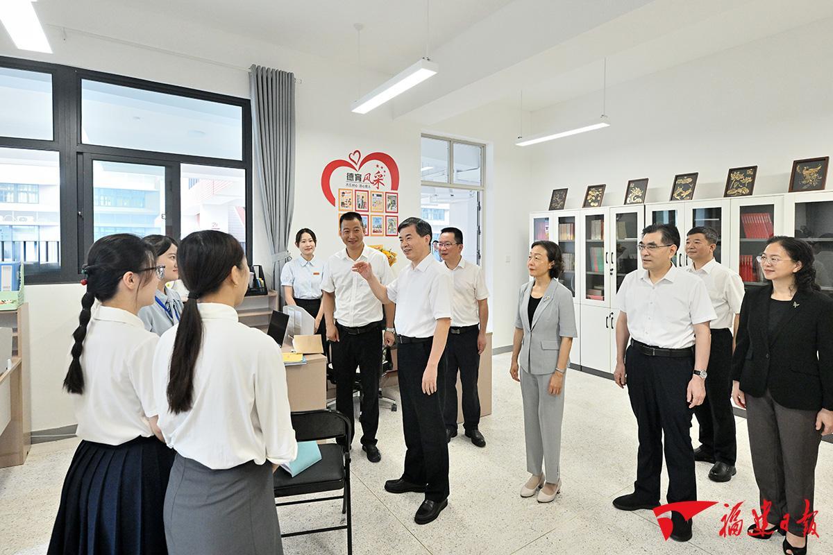 福州市横屿学校是去年启用的九年一贯制新校,随迁子女超过学生数的一半,对优化区域教育资源配置发挥了积极作用。走进书声琅琅的美丽校园,周祖翼详细了解学校规划建设,五育并举、体教融合特色教学,中华优秀传统文化与思政教育结合等情况。周祖翼看望慰问了青年教师代表,向大家送上节日祝福,关切询问工作生活、健康保障等情况,并勉励他们坚守教育初心,善于学习新知识、新技术、新理论,不断探索创新教育教学方法,强化环境育人、文化育人,为教育强省建设作出应有贡献。周祖翼还现场察看了不同年级的学生参加跑步、羽毛球、游泳等体育项目,开展编程、建构及歌舞排练等活动,关心学习、用餐等情况,叮嘱要加强体育锻炼,让学生从中享受乐趣、增强体质、健全人格、锻炼意志,增强集体荣誉感;提倡动脑动手结合,培养科学思维、探索未知兴趣和创新意识;弘扬劳动精神,促进学生德智体美劳全面发展。要强化校园食品安全保障,确保食品质量和营养,共同守护好学生身心健康。