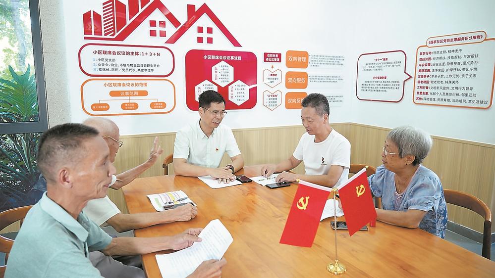 目前,集美区积极建立社区党组织领导下的小区党支部、业委会(物管会)、物业服务企业、社会组织、党员居民代表五方联动的协商议事制度,在全区打造“睦邻议事厅”“红色物业会客室”等线下议事平台107个,构建“邻里事、邻里议、邻里办、邻里定、邻里结”的“微治理”模式。