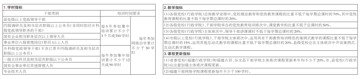 3.优质教材建设。省委组织部、省委党校(福建行政学院)开展全省干部教育培训好教材推荐评选,5年内推荐10种左右全省好教材。